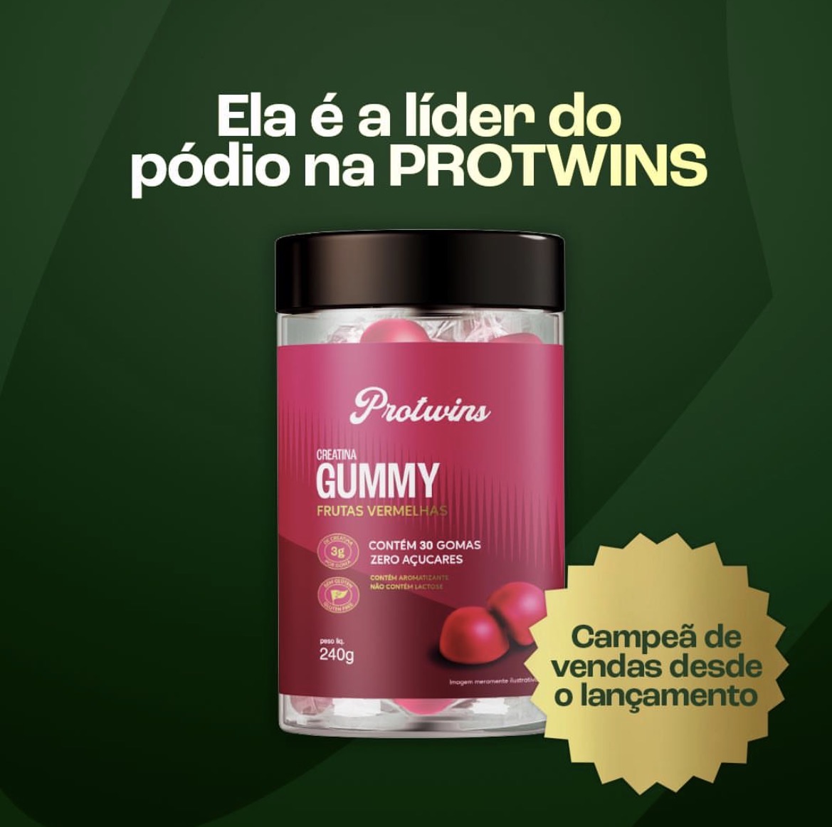 Com apenas 1 Gummy da Protwins, você já garante 3g de creatina na dose certa, com zero glúten, zero açúcares e 100% praticidade.